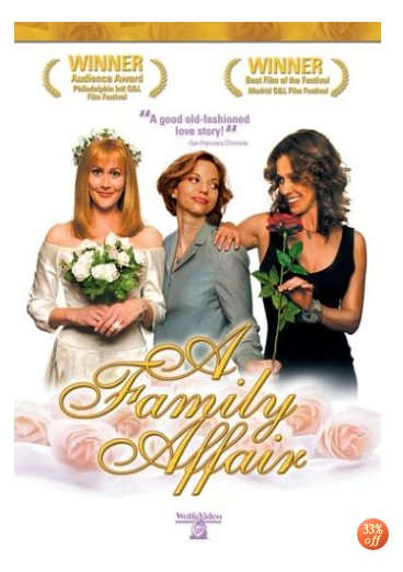 A Family Affair est un film lesbien totalement positif qui ne se prend au sérieux à aucun moment et c’est là tout ce qui fait son charme. Les personnages sont adorables, les situations cocasses (Rachel faisant du roller et essayant de se sauver en marchant sur l’herbe par exemple ou le défilé du PLFAG où la mère de Rachel a écrit sur une pancarte : «  Fière de ma fille lesbienne » et de l’autre côté « Demandez le numéro de ma fille gay célibataire ») et l’amour triomphe. On rit beaucoup, on ne s’ennuie jamais et on ne regrette en rien d’avoir vu ce film.