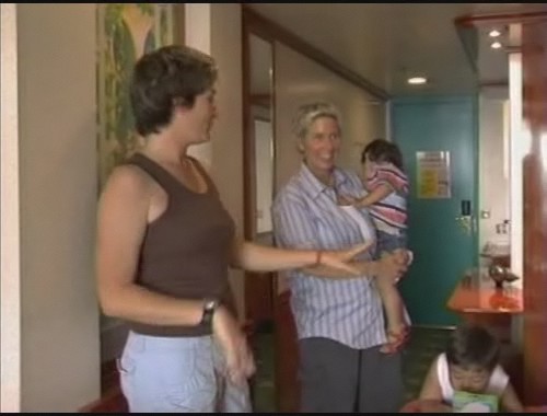 ROSIE : Il y a deux ans, Kelli, moi et Grey étions assis à table et nous nous sommes dit que ce pourrait être intéressant de faire une sorte d’ « ensemble-vacances » et Grey a dit « Pourquoi pas une sorte de croisière. » et j’ai répondu « Bien sûr, pourquoi pas. Ça doit pas être si dur. Ahh ahhh ahh » Ça a été vraiment vraiment intéressant parce que Kelli a une théorie selon laquelle dans chaque relation il y a un jardinier et une fleur. Je suis la fleur. Elle jardine. Donc les choses étaient à peu près… Les deux ou trois derniers mois […] tout tournait autour de cette satanée croisière et j’étais un peu jalouse. Ça m’a un peu énervée du genre « – Est-ce que tu penses que les lesbiennes aiment les cacahuètes ? – Qu’est-ce que j’en sais ?!? »