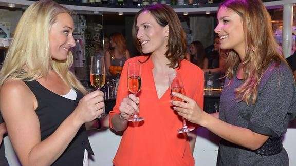 Les trois femmes trinquent à l’anniversaire de Katrin avant de partir écouter un groupe musical au Mauerwerk.
