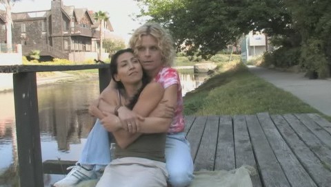 L’ouverture sur le drapeau américain au vent prouve que l’on va avoir droit à un film politique et engagé. Très bien, ensuite une version carte postale nous fait découvrir l’éblouissant soleil californien, la mer, la végétation et on s’arrête sur une blonde qui observe l’horizon d’un pont. Elle se met à marcher et on prend le mal de mer à la suivre caméra au point. Je me suis dit que le caméraman avait intérêt à stabiliser sa caméra s’il ne voulait pas que je vomisse avant la fin de l’introduction. Heureusement à ce moment-là, la blonde termine son long périple sur le trottoir pour s’approcher d’une brune à la peau mate assise par terre. Elle l’enlace, l’embrasse. Toutes les deux se chamaillent et montrent qu’elles sont amoureuses.